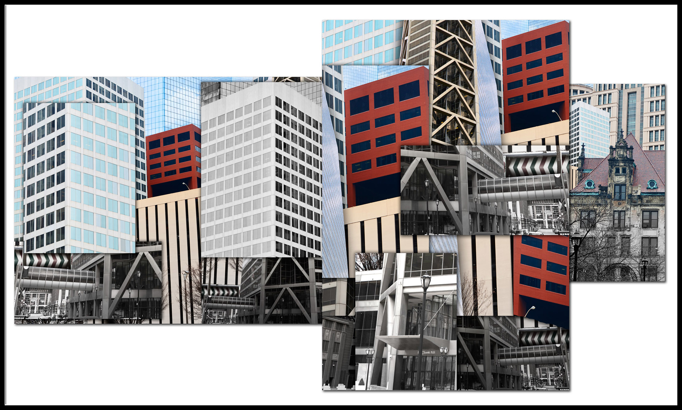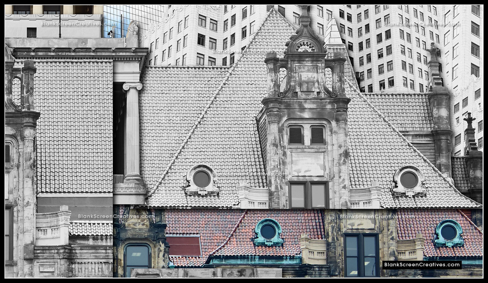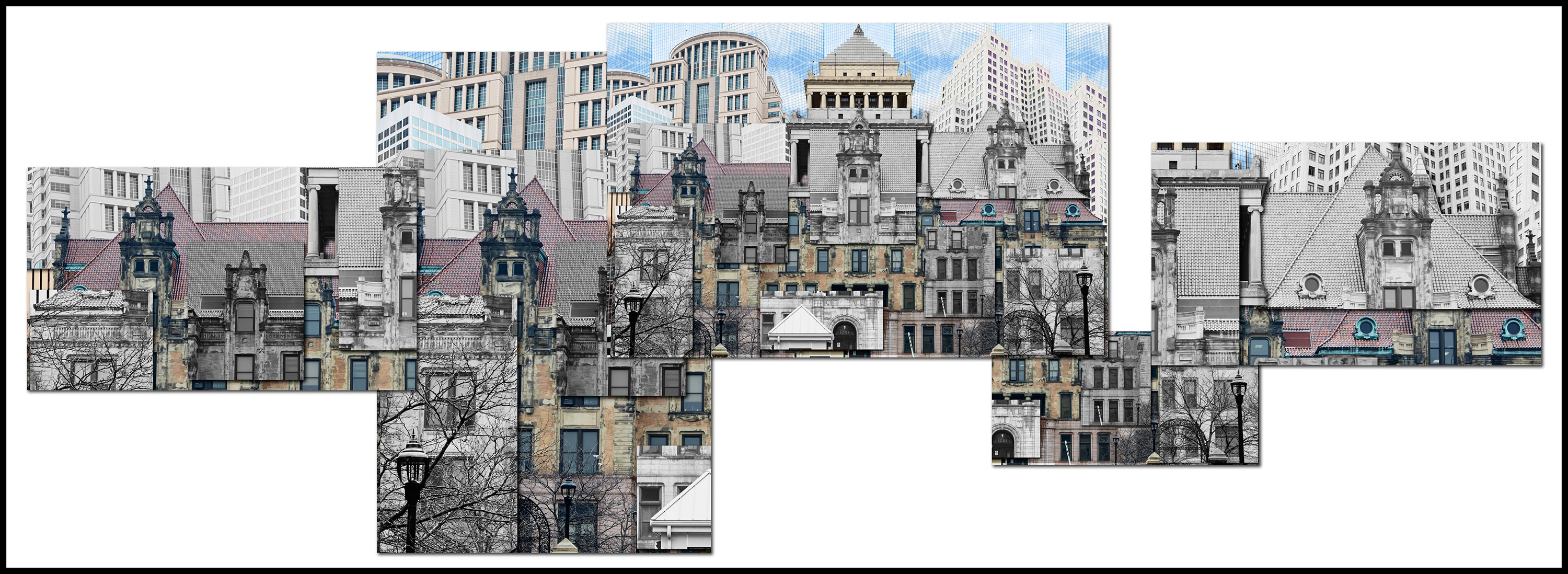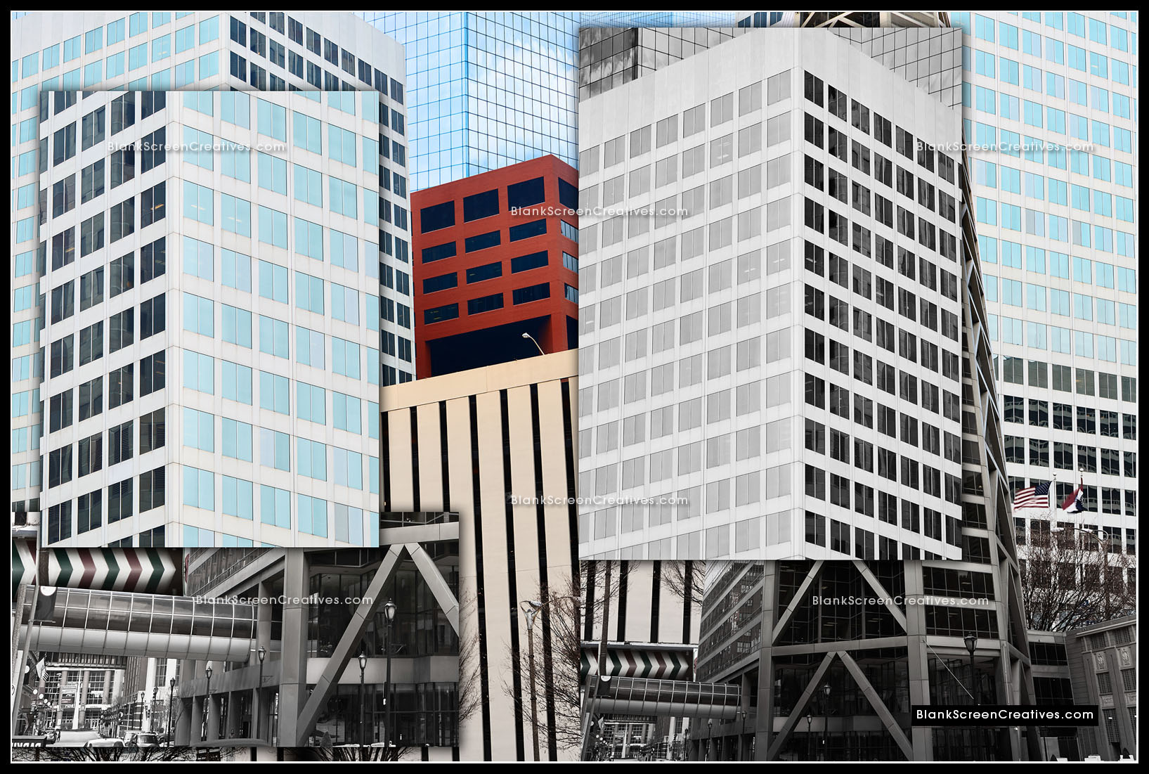 Nervous, but at the same time knowing this project was the culmination of countless late nights spent creating while exploring my imagination, I accepted the challenge and immediately went into action mode. The piece had to be created from photographs of old and new St. Louis architecture. An added challenge was that it was the end of February and we had to deliver the final in April which might not sound bad until you consider the cold winter had left the city lifeless and grey. The budget allowed for 4 days on the ground in St. Louis for photography so I quickly booked my flights. As the trip approached I learned the forecast for those days was in the 20's and raining which made the weight on my shoulders quickly increase.