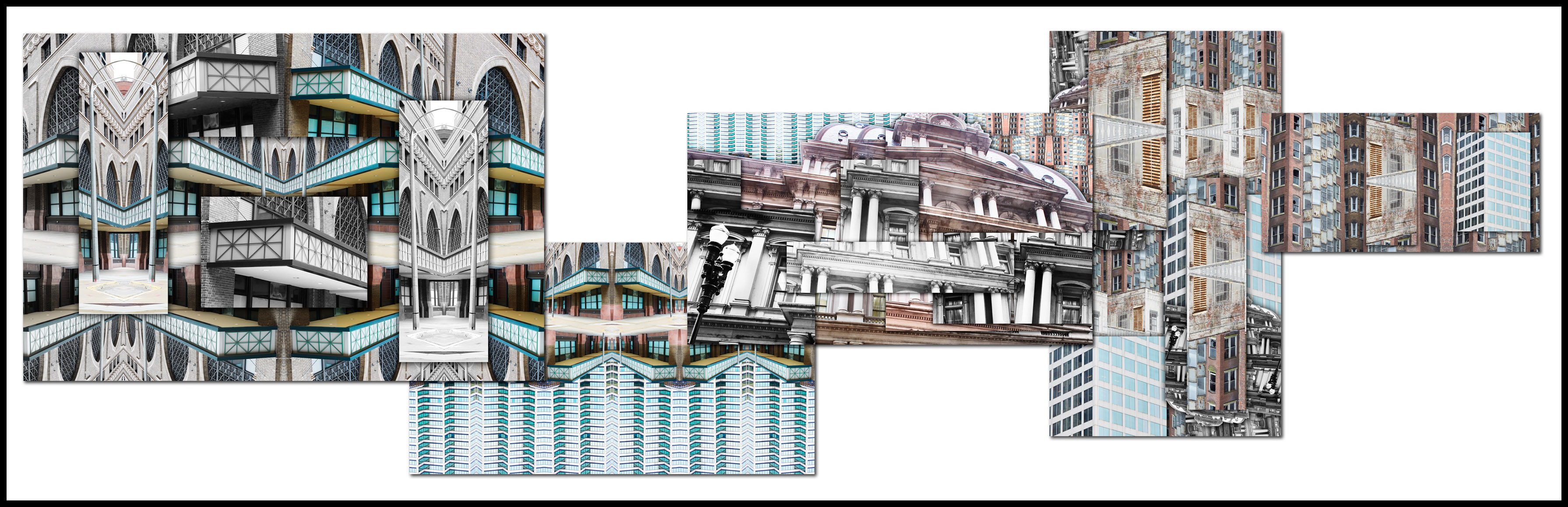 I pull a lot of inspiration from the music I listen to when I'm working on my creative projects. Music goes through a transformation from audio to visual as it passes through my mind. On this project music ended up allowing me to see how to make the panels cohesive while maintaining the abstractness everyone wanted. While I was working on the 3rd revision I was listening to some house/ electronic music and it dawned on me that I needed to use the layered visuals in this piece the same way the DJ's were using the beats. As one song transitioned into another there were little teasers of the upcoming song being dropped before it launched fully into the next song. It was nothing short of an epiphany and as soon as I had it the entire composition started falling into place. I added architectural elements of buildings that would be introduced in the upcoming panels so that the entire piece was a slow visual merging of old and new St. Louis architecture.